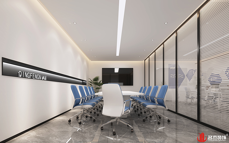 在前臺背景墻使用鋁單板作為主要裝飾,整體突出一個統一且流暢的造型,跟圓頂天花造型配合,搭配土豪金的點綴,能夠跳脫出原有時尚簡約的風格,自成一個獨特的設計風格。同時在整個辦公室裝修設計空間當中,碳晶板的加入也讓空間的設計風格更加完善,對于大面積的使用,碳晶板有著很好的整體性,出來的整體效果也更好。#廣州辦公室裝修#