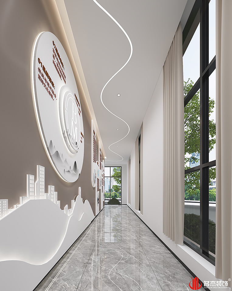 辦公裝修設(shè)計空間的主打風(fēng)格是時尚簡約風(fēng)格,但是設(shè)計團隊從化妝品行業(yè)中汲取設(shè)計靈感,同時加入一些線條的元素,堆疊出一種不同往常的時尚簡約風(fēng)格。前臺區(qū)域則是使用簡單的線條,搭配圓弧的天花吊頂,天圓地方的設(shè)計概念,簡約而不簡單。而在電梯間這個地方,利用水紋不銹鋼的材料,結(jié)合弧線元素,具象化了中國龍這個設(shè)計元素。太陽,中式房屋,中國龍,寓意著江西瑞彩化妝品公司能夠龍騰四海。#廣州辦公室裝修#