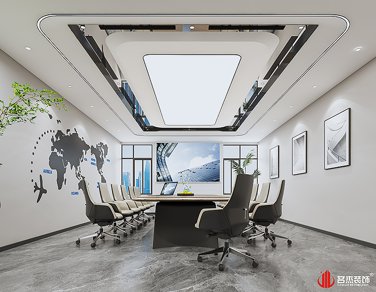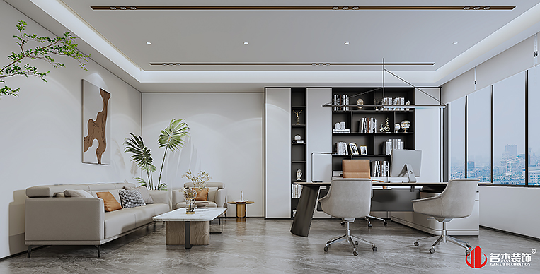 整體風(fēng)格是按照時尚簡約風(fēng)格來進(jìn)行設(shè)計(jì)打造的,加入簡單的線條來讓空間的設(shè)計(jì)感得到加強(qiáng),同時平頂?shù)奶旎ㄗ尶臻g看起來更加清爽。時尚簡約的風(fēng)格也是可以突出該企業(yè)的企業(yè)氛圍的。#廣州辦公室裝修設(shè)計(jì)#