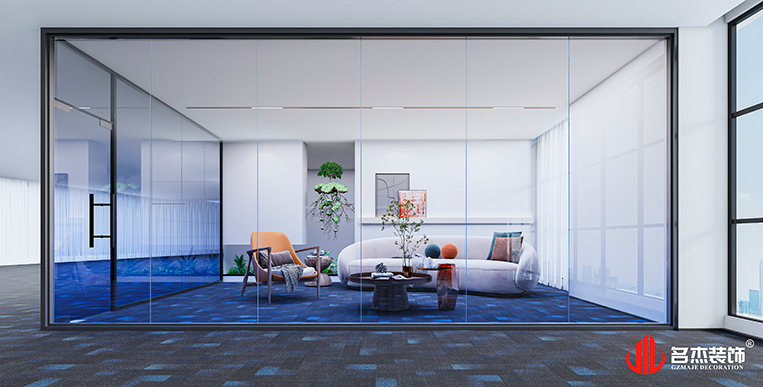 設計團隊采用的時尚簡約的設計風格作為這次的主打風格,將企業的LOGO——藍色融入到整體設計當中,企業文化也能夠很好地在整個辦公室裝修設計空間展開,讓員工和來訪的客戶感受到來自企業文化的沖擊。天花吊頂上使用撞色的設計,讓空間中有著不一樣的特色,區別于傳統的辦公裝修設計空間,成就屬于他們自己專屬的辦公室裝修設計空間。#廣州辦公室裝修設計#